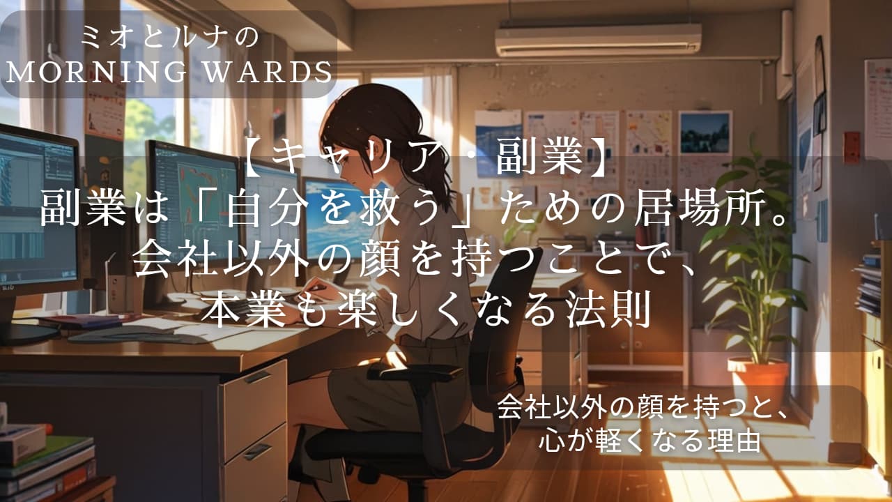 【キャリア・副業】副業は「自分を救う」ための居場所。会社以外の顔を持つことで、本業も楽しくなる法則