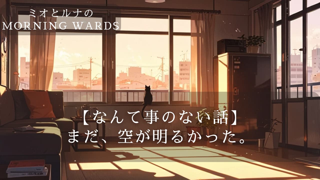 部屋のドアを開けると、ほんのり温かい空気が頬を撫でた。 夕方の陽射しが残るアパートの一室には、コーヒーと紙の香り、そしてミオの日常が静かに息づいている。 「ただいま、ルナ」 声をかけると、カーテンレー ...